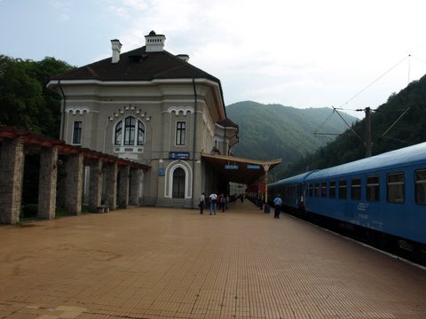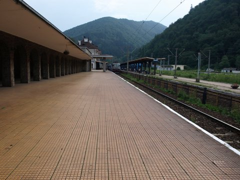 V ozadju vidimo železniško postajo
