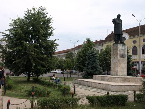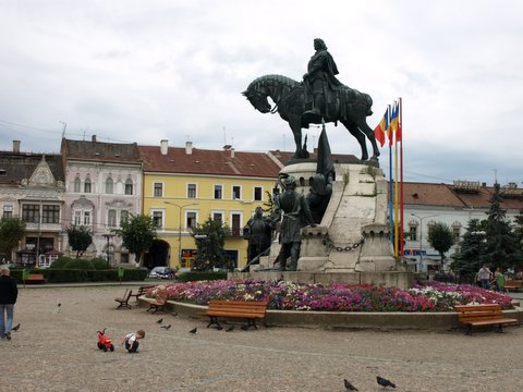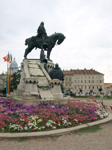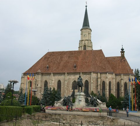 Pred veliko katoliško katedralo stoji spomenik Matije Korvina