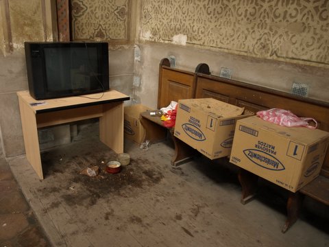 V enem kotu je prebivališče čuvaja sinagoge in njegovega kužka