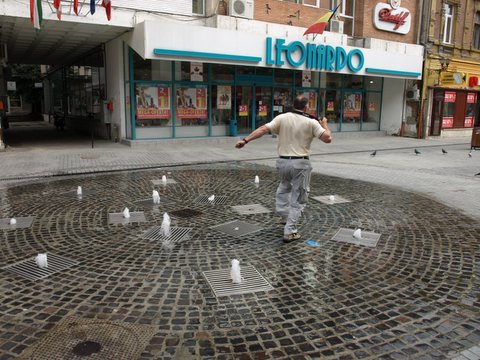 Pozornost pritegne vodomet, kateri zelo nepredvideno deluje