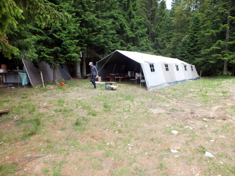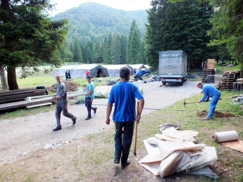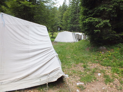 Ko smo čakali tovornjake, smo se oglasili v brunarici