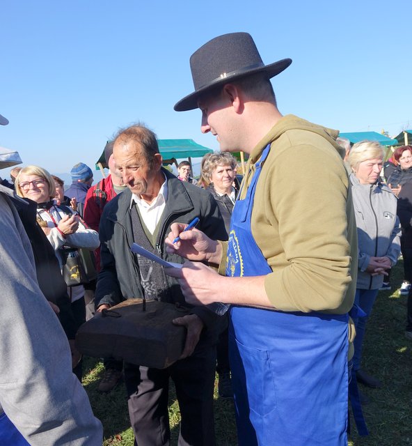 Tehtanje "babe" (plošče, katero se da na vrhu grozdja v preši,