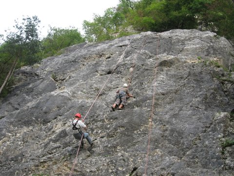 Peter in Janez sta nam omogočila, da poizkusimo plezanje v Tremarski steni, steno je v celoti prosto preplezala Martina.