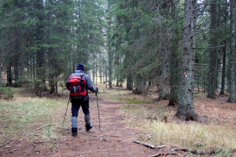 Z Rogle sva hotela na Jezerski vrh pa sva zaradi goste megle in vetra odšla s Peska na Klopni vrh.