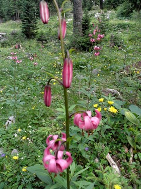 Vso pot nas spremljajo rožice in pa živo rdeči grmički rododendrona.
