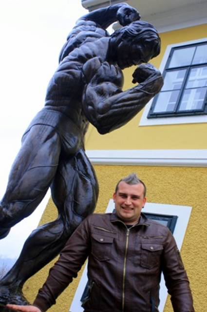 Božo s Schwarzeneggerjevim 2-metrskim bronastim kipom.
