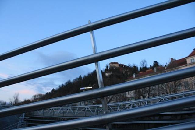 s številnimi novimi 'futurističnimi' stavbami. Ena od teh je tudi t.i. MURINSEL most –