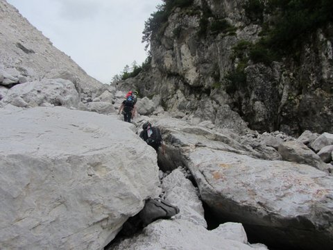 Začetek poti v Pontebbi, 561 m, nato skozi sotesko Volčjega potoka do 965 m,