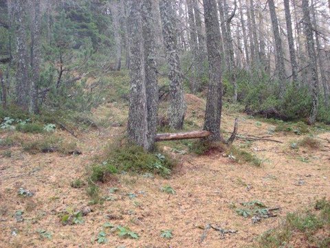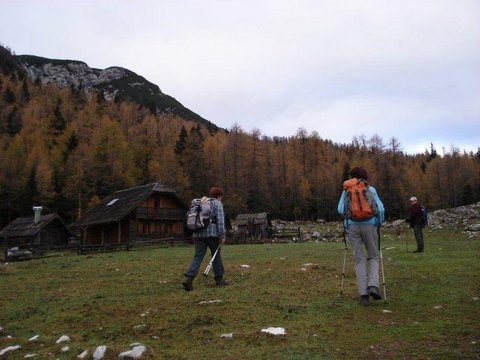 čez Dolgo trato nazaj na planino Ravni. Vreme malo megleno, macesni so se že