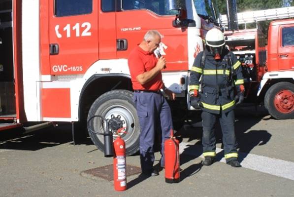 Pred hotelom pa so imeli gasilci predstavitev svoje opreme in demonstracijo gašenja z gasilnimi aparati.