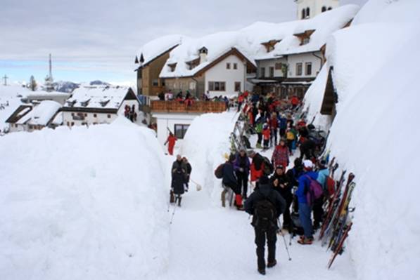 Že na parkirišču v Žabnicah smo ugotovili, da so tak lep zimski dan želeli še mnogi drugi izkoristiti v naravi - predvsem pa za smučanje. To je bil raj za turne smučarje, deskarje, pa tudi druge rekreativne smučarje, saj se od Trbiža do Žabnic nahaja mnogo smučišč.