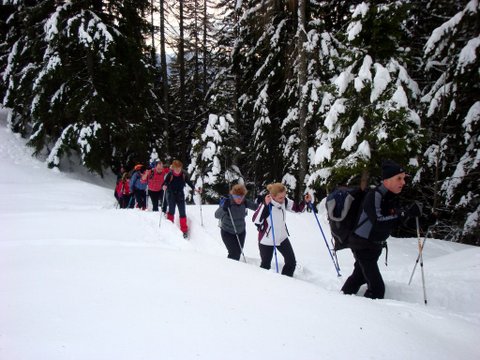 se v pravih zimskih razmerah, mimo kmeta Najbrža in Lovske koče,