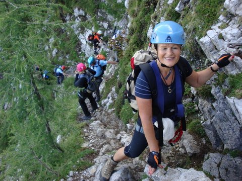 druga pa se pod severnim ostenje po zavarovani poti prišla na vrh. Turo smo