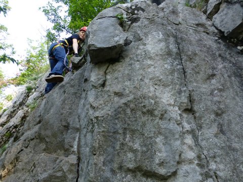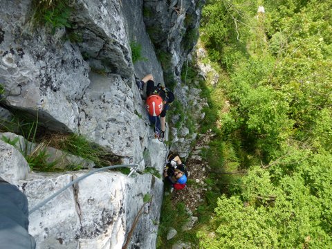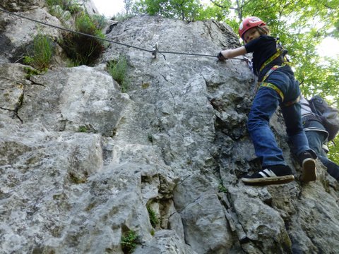 Plezanje ferrate v Glinščici (Italija) z vnukoma, Nikki 10 let in Julijan 6 let.