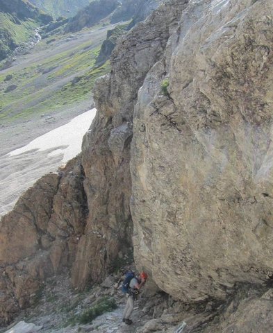 grebenu Obstansattel, 2462 m mimo vojaškega pokopališča (p. 5a) in nato spust po