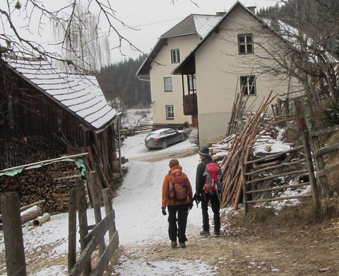 v Žitari vasi (500m) iz zaledenele ceste v dolini Zaplaznica po poti št. 645 na
