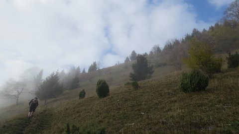 ČEMŠENIŠKA PLANINA 9. nov. Start na Vrheh, nato do koče po poti iz Čemšenika, megla prebita na višini cca 1000 mnv. Lep pozdrav Mirko in Olga.