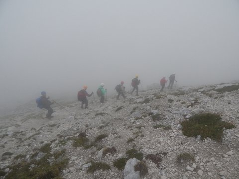 V soboto smo se z Vršiča povzpeli na Jalovec. Sestopili smo čez Kotovo sedlo v Tamar. Bilo je megleno, to se pravi brez pravih razgledov, na koncu nas je kakšne pol ure tudi pralo, vendar je bilo vredno truda!