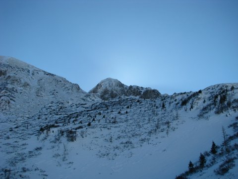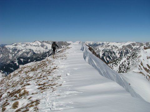 snežnimi zameti smo prispeli na greben,kjer se pot odcepi na