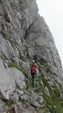 Severna stena, po kateri poteka zadnji del ferate Via Italiana, pred izstopom na sedlo.