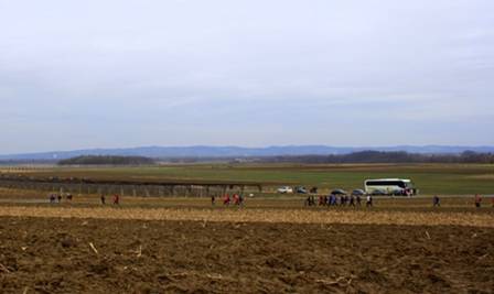 Nekatere čakajo avtobusi - mi pa kar pot pod noge in korakamo naprej po širni ravnici do Murskega Središča.