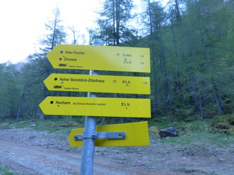 Start na parkirišču pod Altepoharjem, nato vzpon mimo Zirmsee na sedlo Goldzechscharte,