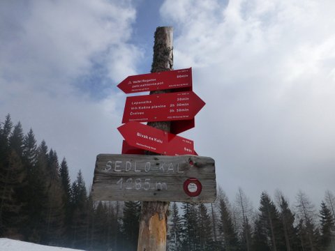 do sedla Kal ter nazaj do avta. Tura je bila zaradi predirajočega snega
