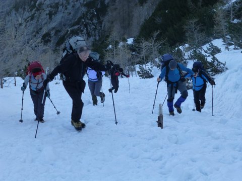 Vzpon na Špik skozi Kačji graben. Razmere so bile ugodne, razen nekaj sitnega prebadanja snega. Na vrhu sonček z nekaj oblaki, na povratku pa že prava »vročina«.