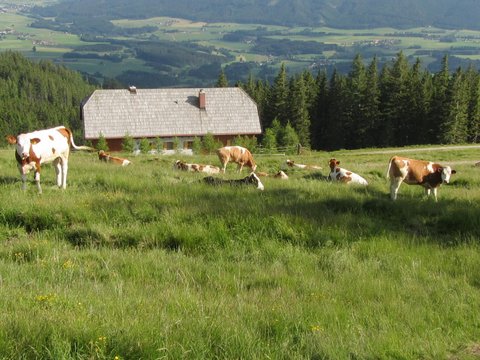 Sestop po poti 32 na Grafenalm (1432 m) in domačije Kuhberger (1083m).