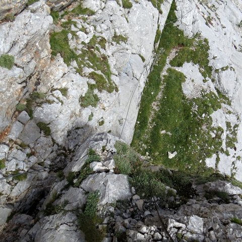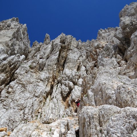neuspešno iskala vstop na vrh Velike Martuljške ponce. Na koncu sva ga