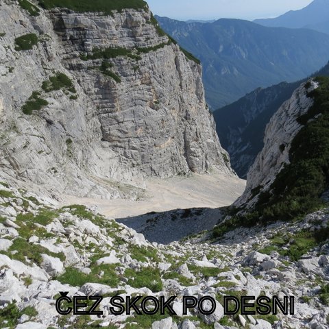 Sestop preko krnice Za Cmirom do Turkovega rovta v Vratah. Našla sva desni obvoz preko skoka na dnu krnice, srečala nikogar.