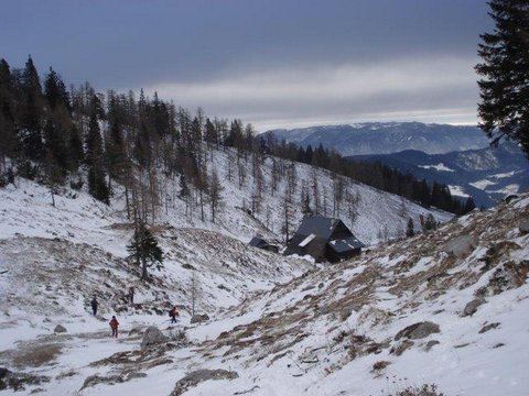 Nekaj utrinkov z novoletnega vzpona na Raduho. Silvestrovali na koči, zjutraj na vrh, snega ne kaj dosti, pot zgažena, mestoma malo poledenela.