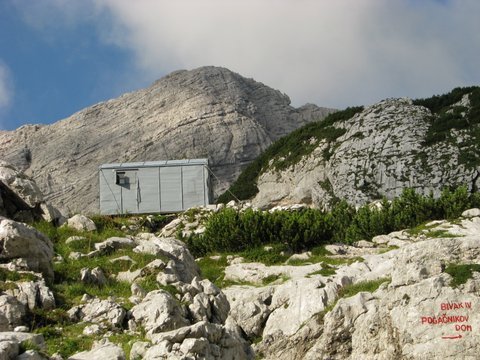 stopinj naklona)med razmetanimi nestabilnimi skalnimi bloki do bivaka