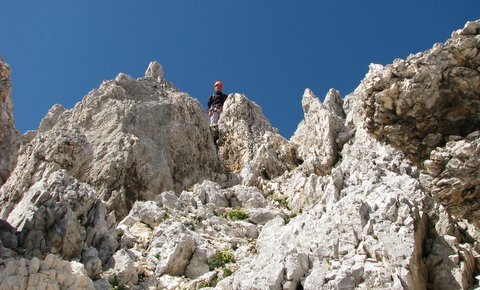 Alpinistični vzpon I. - III.,skala ostra in krušljiva,izpostavljenost