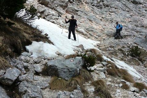 na vrh. Na vrhu so nam razglede zastrli oblaki in megla. Povratek po