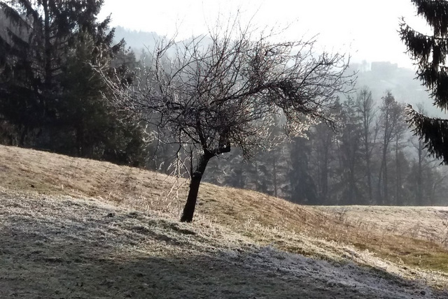 S Hovnikom sva hotela k sv.Tomažu nad Vojnikom, pa sva zaradi megle podaljšala do Črešnjic, kjer pa je bilo že lepo sončno.