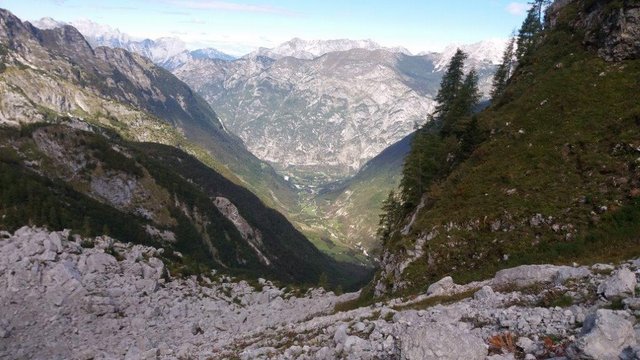 2042m.Sestopili pa smo mimo Krnskega jezera v Lepeno.Čas hoje 9,30