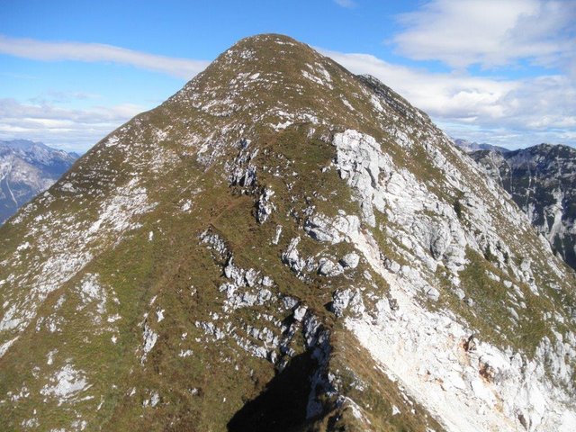 večkrat izgubi.Nadaljujemo po izrazito lepem grebenu proti vrhu V.Lemeža