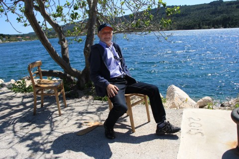 V trajektnem pristanišču Gaženica - srečanje s prijateljem Borisom.