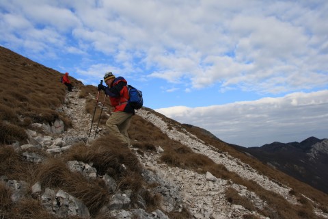 V rahlo vetrovnem jutru se iz Razdrtega zapodimo po strmini proti vrhu Nanosa.