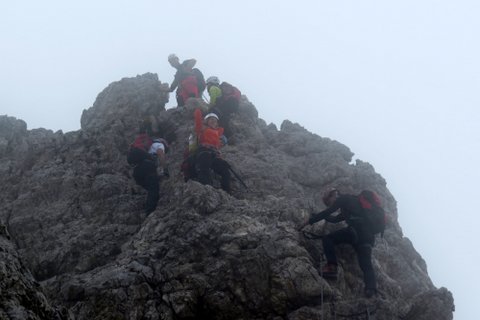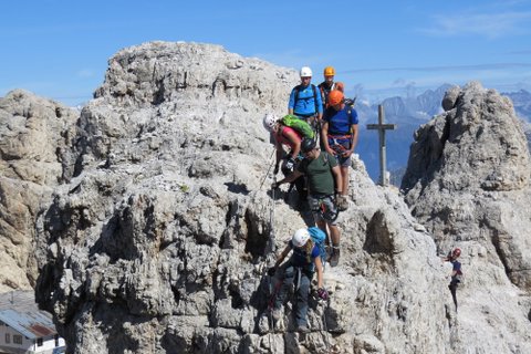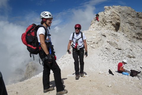 3154 m visok vrh, povratek na sedlo in vzpon po ferati Dibona na 3008 m