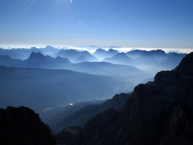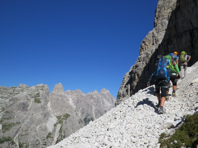 vrh, 3 ure, sestop do razpotja in po Strada degli Alpini (101) pod ostenji