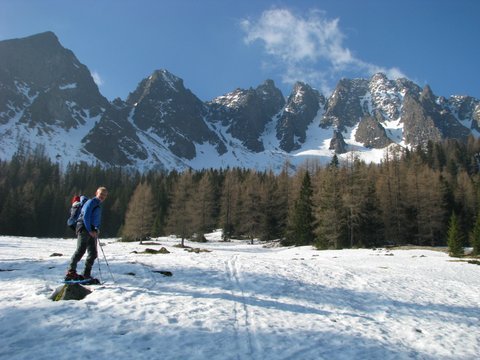 Na pot smo se podali z Bergerhube-1198m, krpljali do žleba. Po strmem