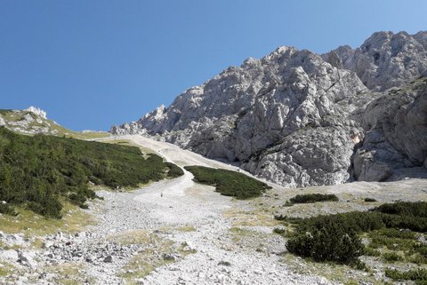 greben.Sledi vzpon po ostrem razu na Kaptansko glavo 1943m in naprej na