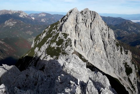 vrh.Nadaljujemo po grebenu na Storžek in še na drugi vrh do križa.Sestopili