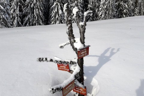 Ljubnjega ob Savinji.Višje se vzpenjamo,snega pa vedno več.Pod Malim