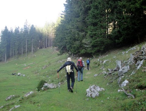 turnu, potem pa po nermarkirani lovski stezi na greben Košute in vzpon