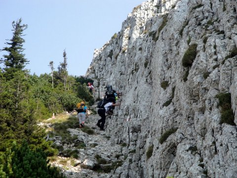 tam je sledil, najprej spust sedlo, nato pa vzpon po Kopetzkysteigu na