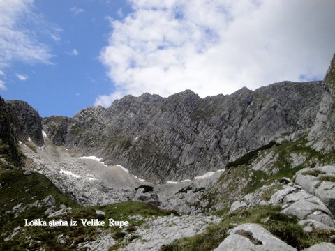 pobočju Meje, najprej povpeli do kotanje Velika Rupa. Nadaljevali smo