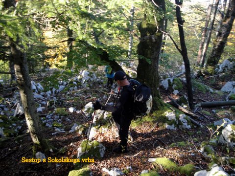 bljižnji Sokolski vrh (711 m). Nadaljevali smo s hojo (pretežno po
